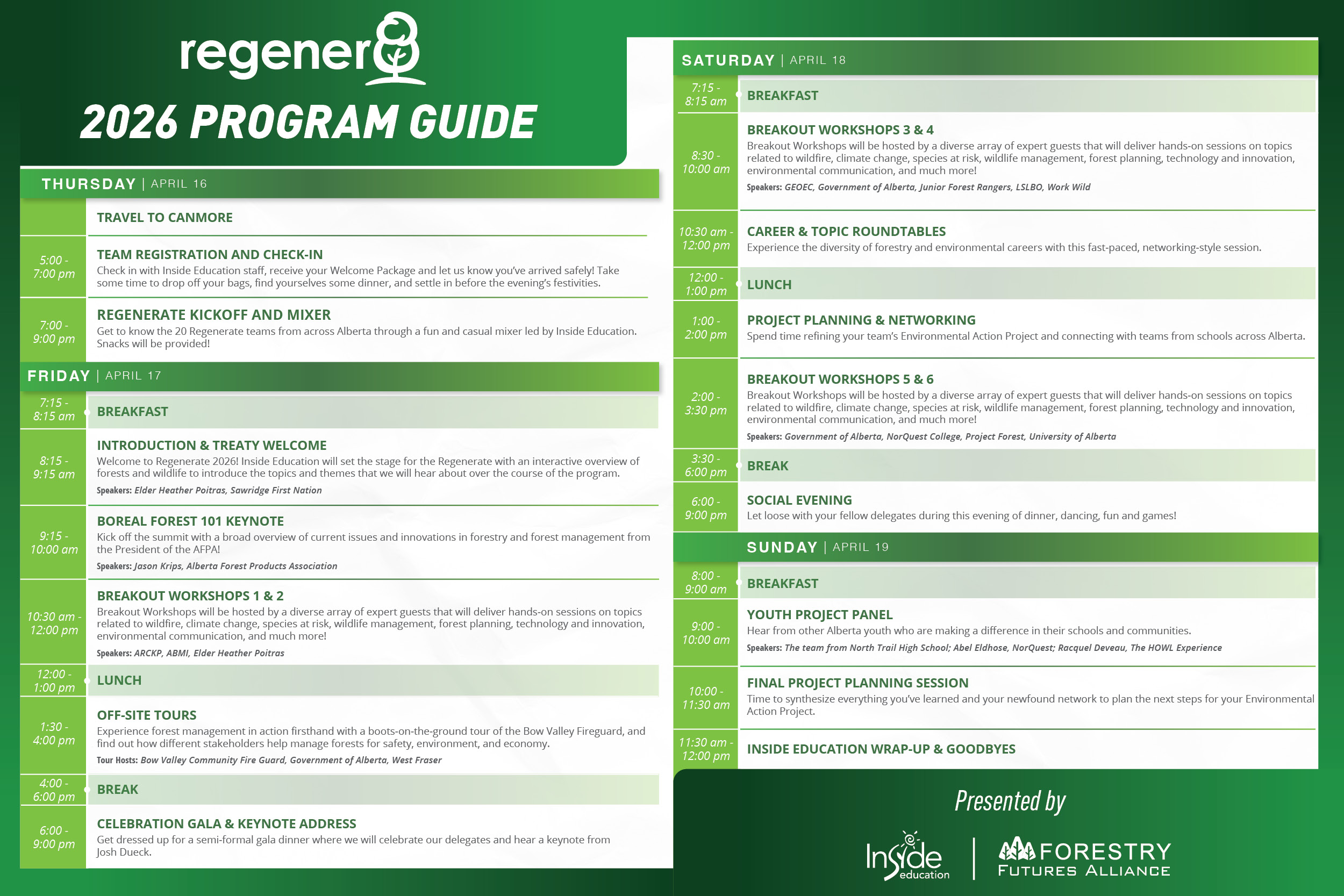 *Breakout Workshops will be hosted by a diverse array of expert guests that will deliver hands-on sessions on topics related to wildfire, climate change, species at risk, wildlife management, forest planning, technology and innovation, environmental communication, and much more!
